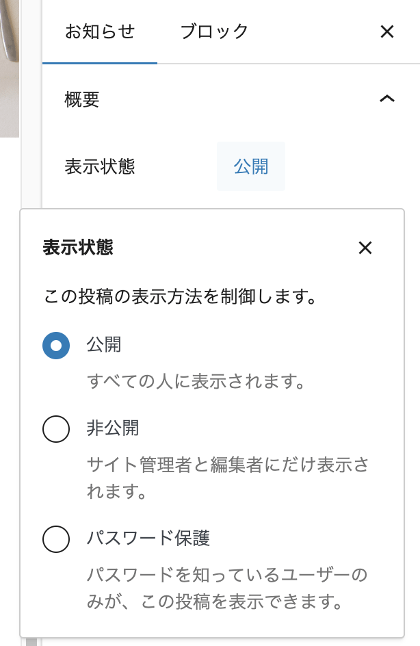 「非公開記事」は、管理画面へログインしたユーザのみ閲覧できる公開設定です。