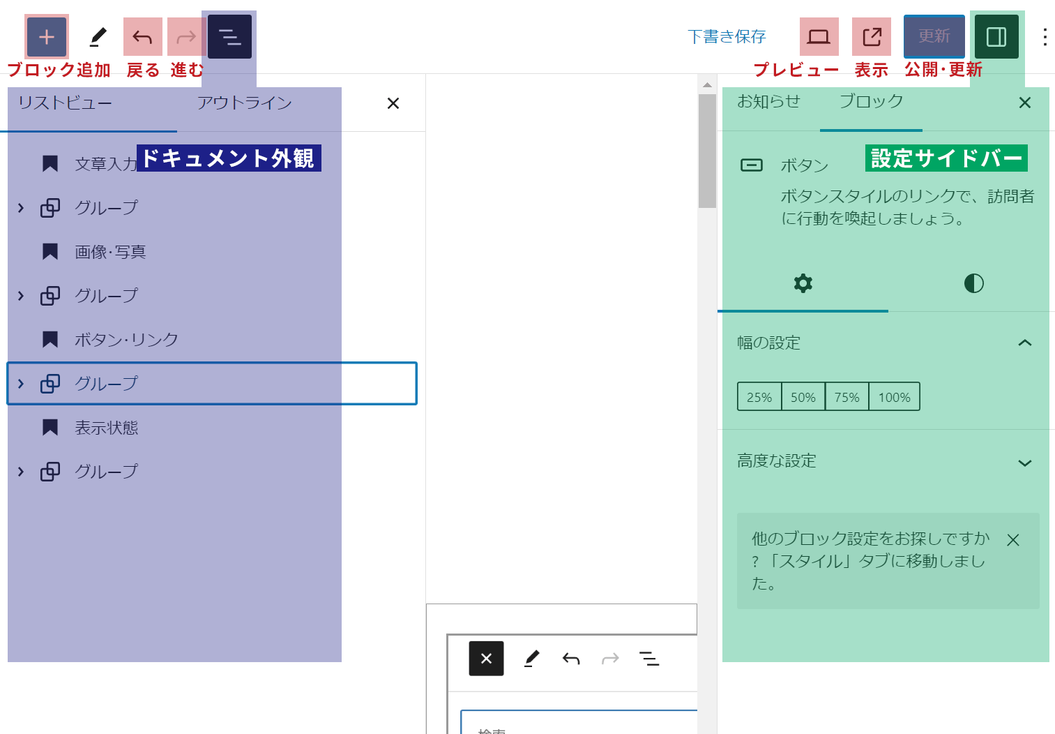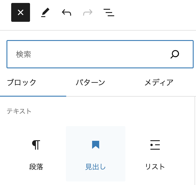 ブロックエディタ(記事編集画面)では、見出し・画像・文章などを様々なブロックを利用して管理します。