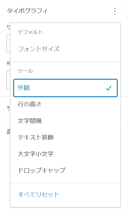 その他、「イタリック(斜体)」など複数の外観設定があります。